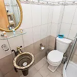 Der tilbydes også separat toilet, et badekar og en bruser på badeværelset.